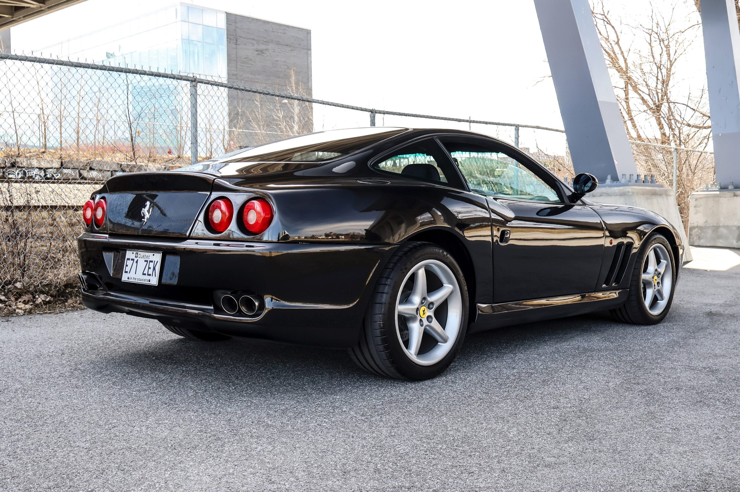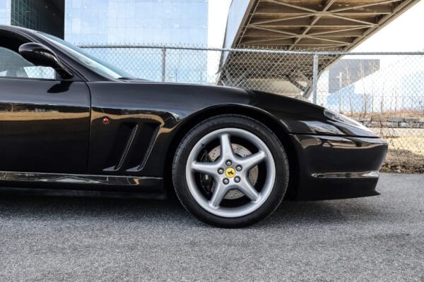 This Euro-spec 1998 Ferrari 550 Maranello, one of only 3,083 produced, is finished in striking Nero Daytona Metallic with Nero leather upholstery. Originally sold in Greece, it later moved to England, where it was meticulously maintained at the renowned Joe Macari Ferrari dealership in London. The car was subsequently registered in the Netherlands and imported to Canada in 2022. It features an aftermarket Tubi-Style exhaust system, enhancing its performance and sound.